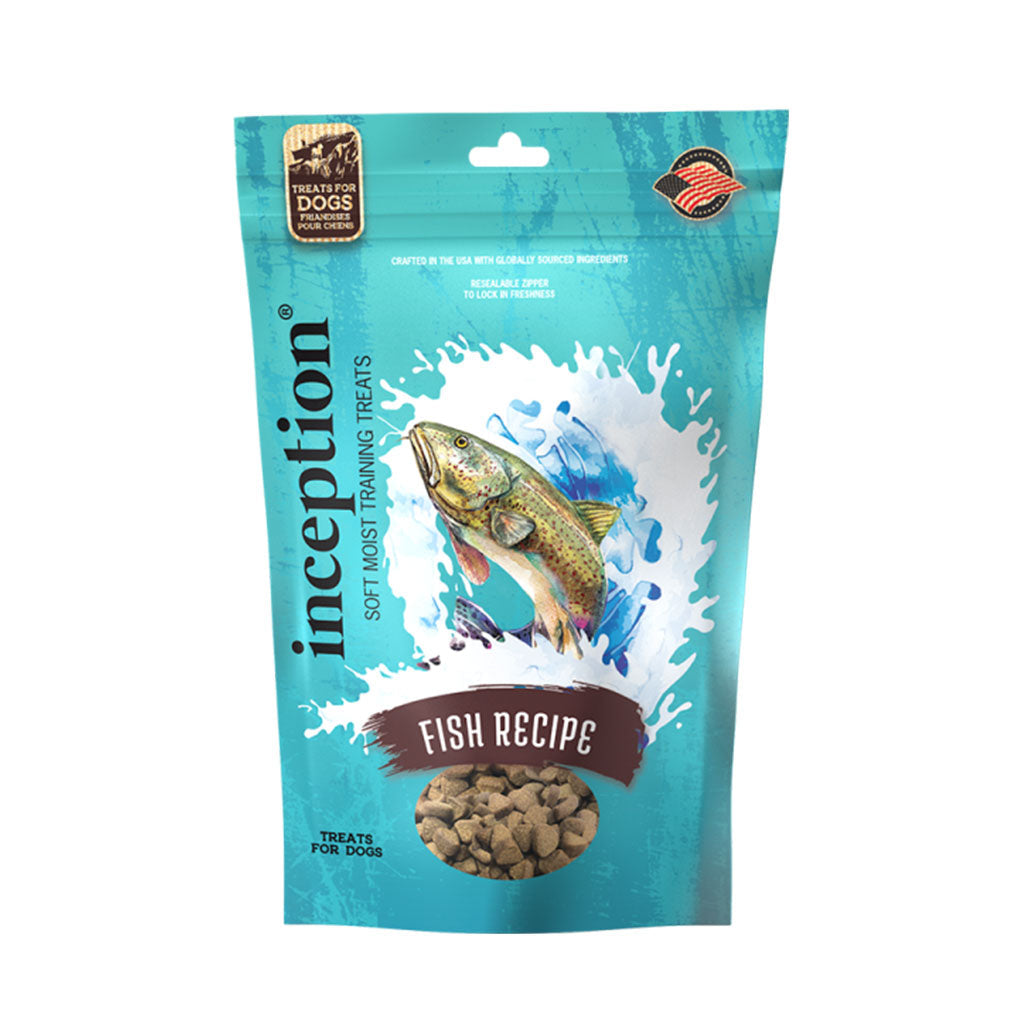 Inception Fish Recipe dog training treats are extremely tasty and small in size. Conveniently, the treats are perfect for training as they can be broken into smaller, bite-size pieces, making it the perfect healthy reward for your dog. They're made with nutritious and delicious ingredients with fish protein first, followed by oats, millet, and milo.
