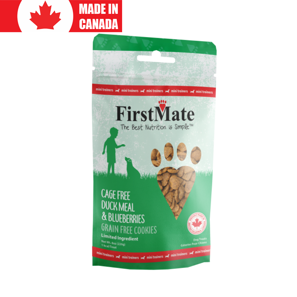 First Mates Limited Ingredient Mini Trainers have only 1 kcal per treat. Great for small mouths and long training sessions. These high reward treats are designed to be a meat-based alternative to a typical biscuit. This grain, glycerine, gluten, and pea free formula is ideal for everyday use as a treat or training aid for your dog.